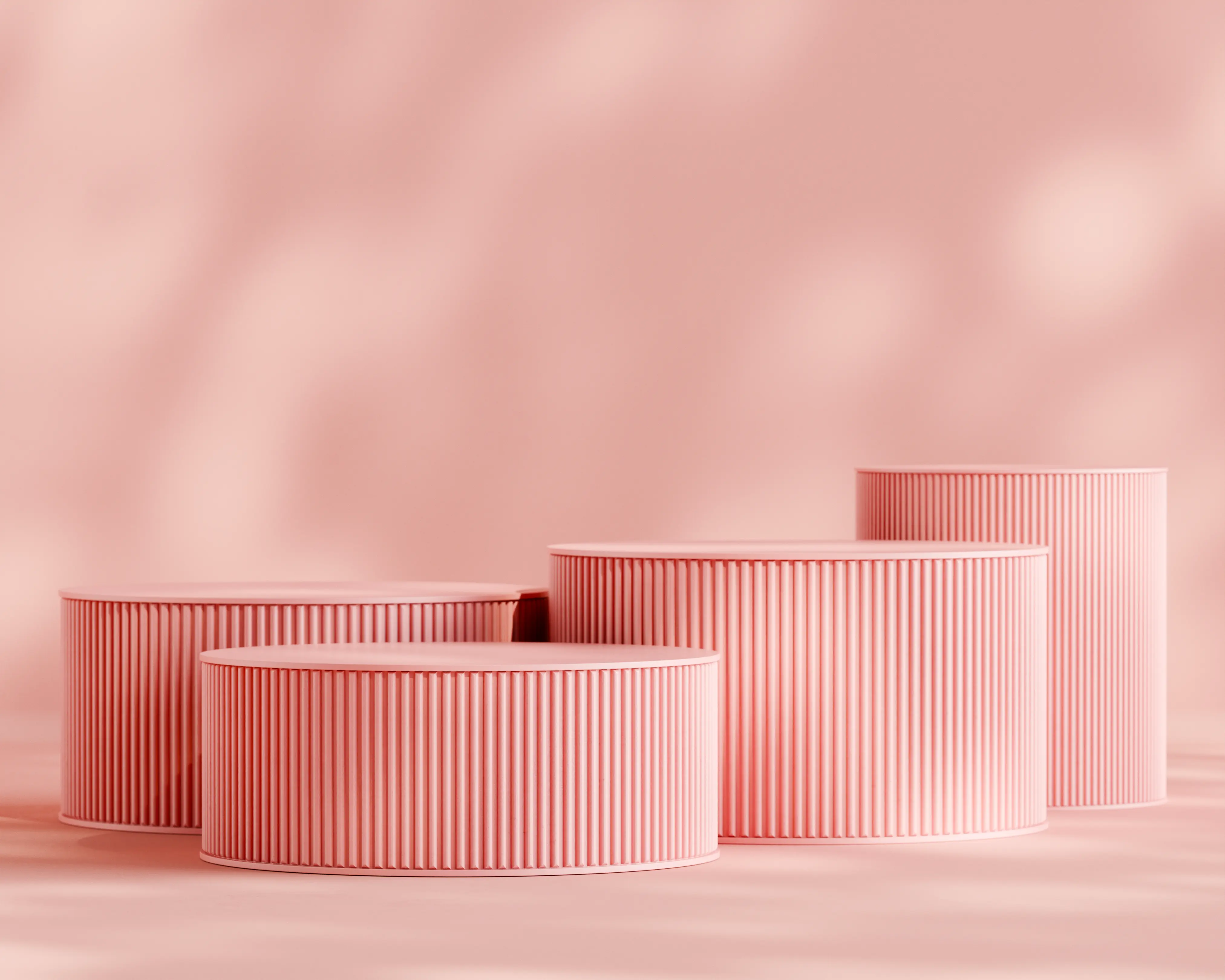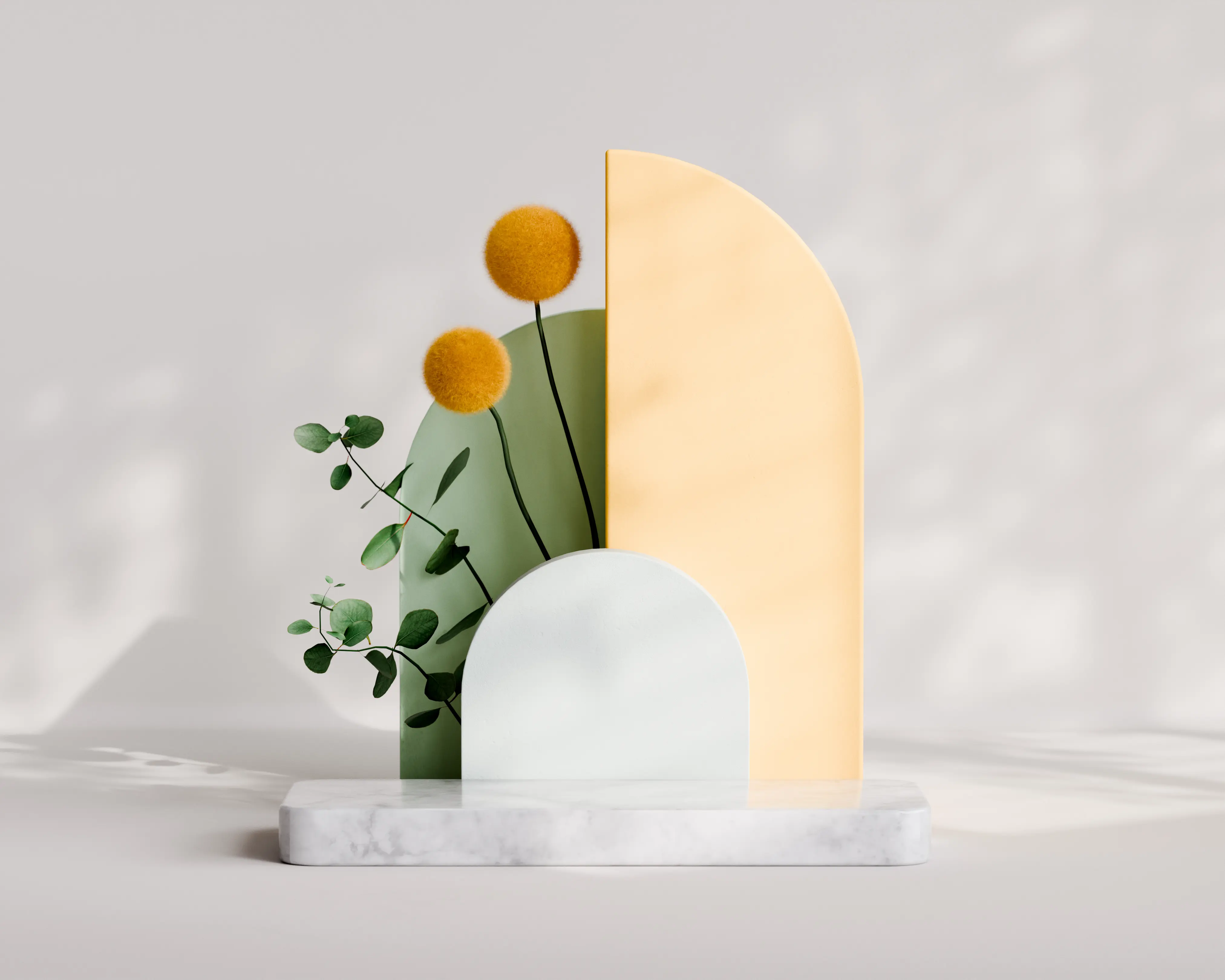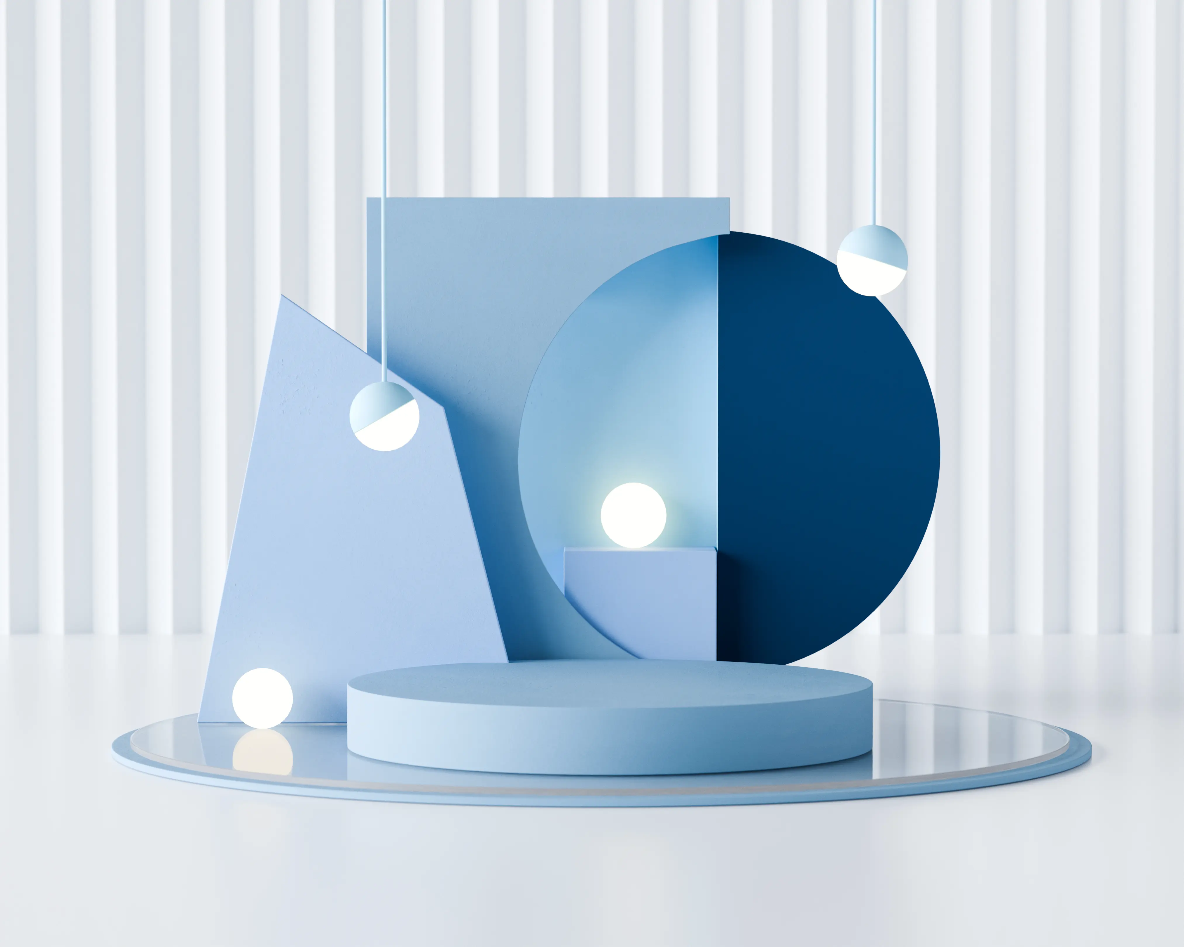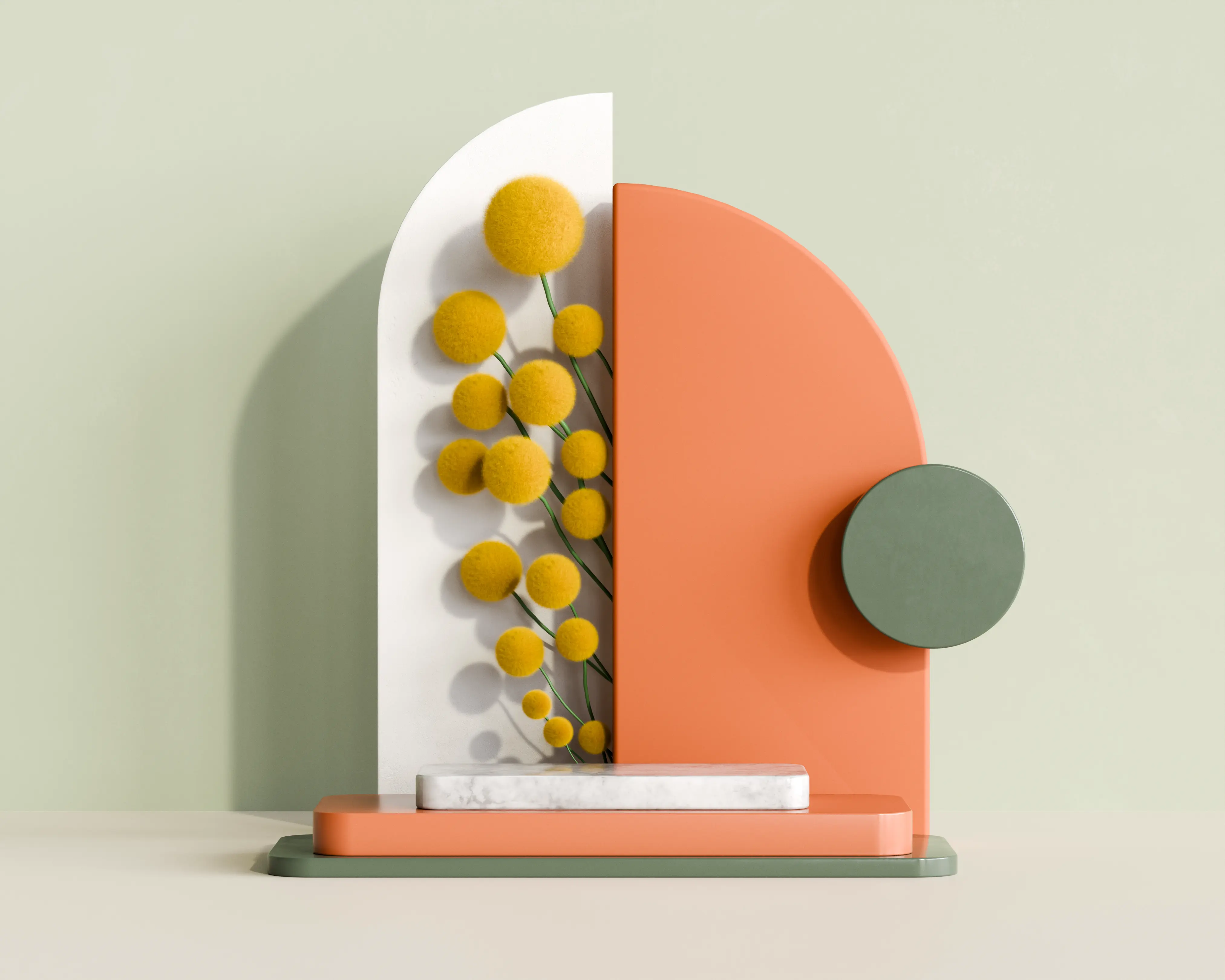 Showcase your products in stunning 3D studio scenes, featuring modern, minimalist designs and curated backdrops.
